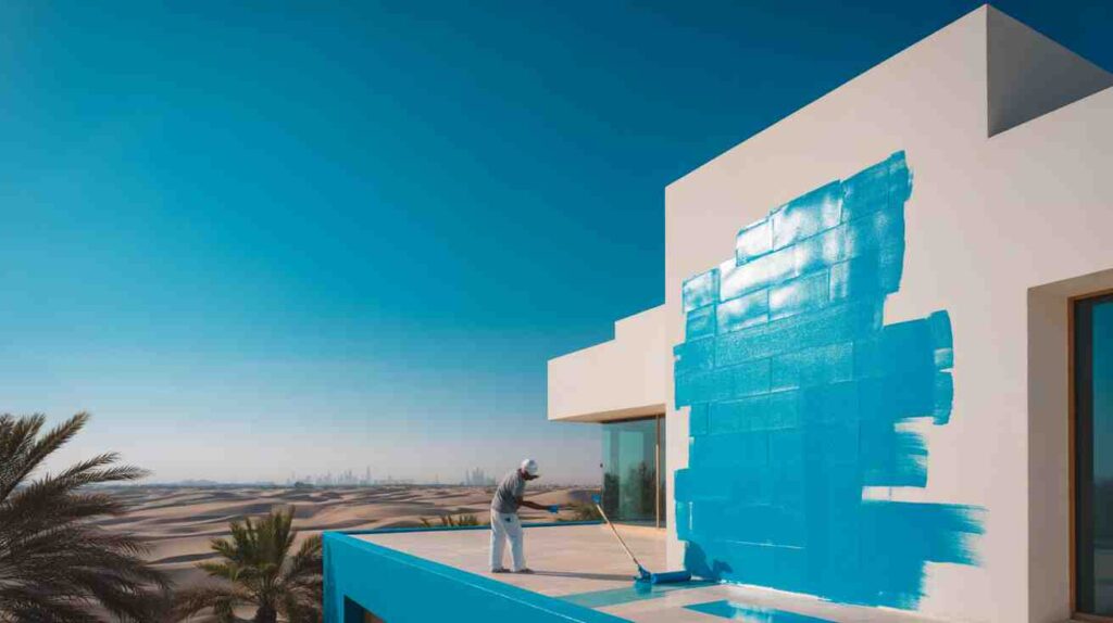 - Exterior Paint: Due to Dubai’s harsh weather conditions, your home’s exterior needs more frequent attention. In most cases, exterior paint should be repainted every 5 to 7 years. This ensures protection against the sun’s UV rays, dust accumulation, and moisture from occasional rain or humidity.